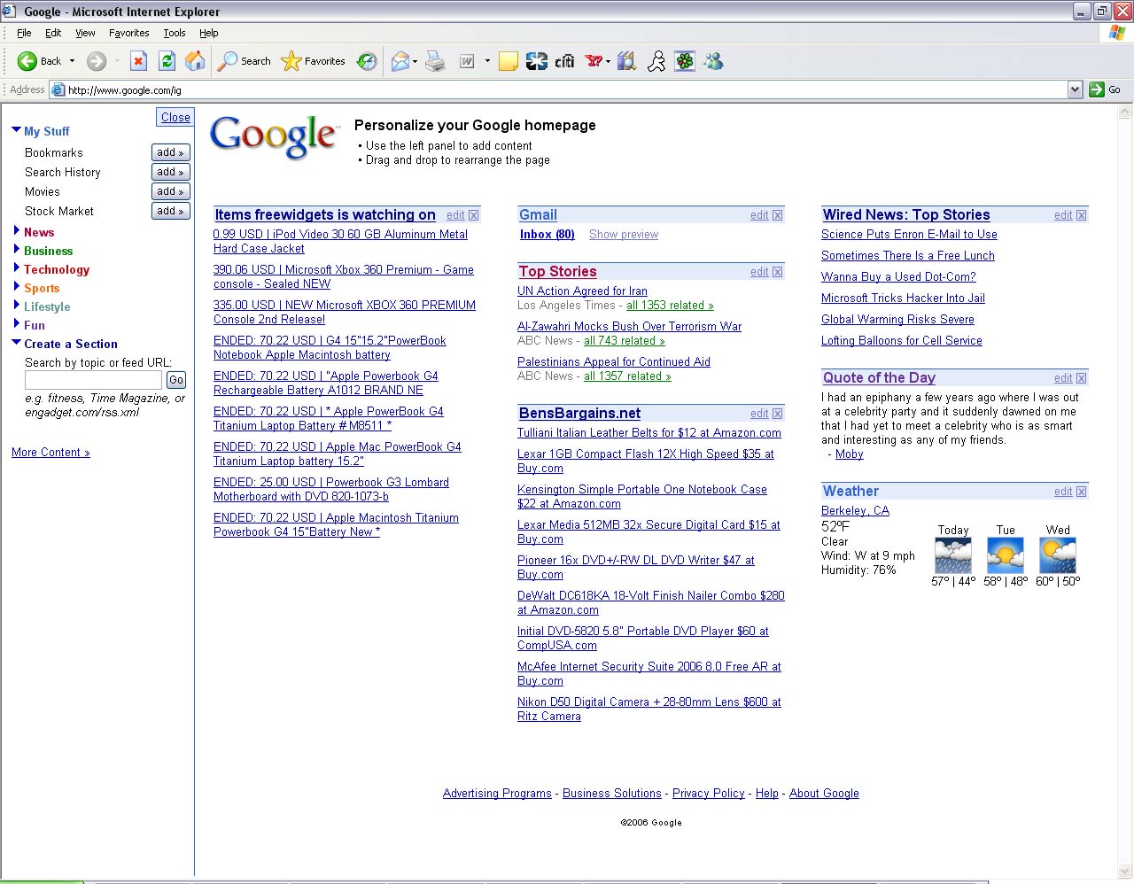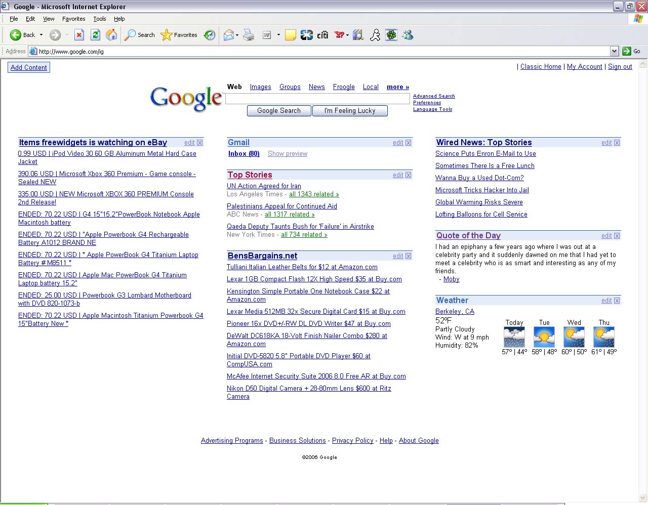 http://www.google.com/ig your homepage, you can see the weather, news and your eBay items in 1 quick glance everytime you open your browser!
