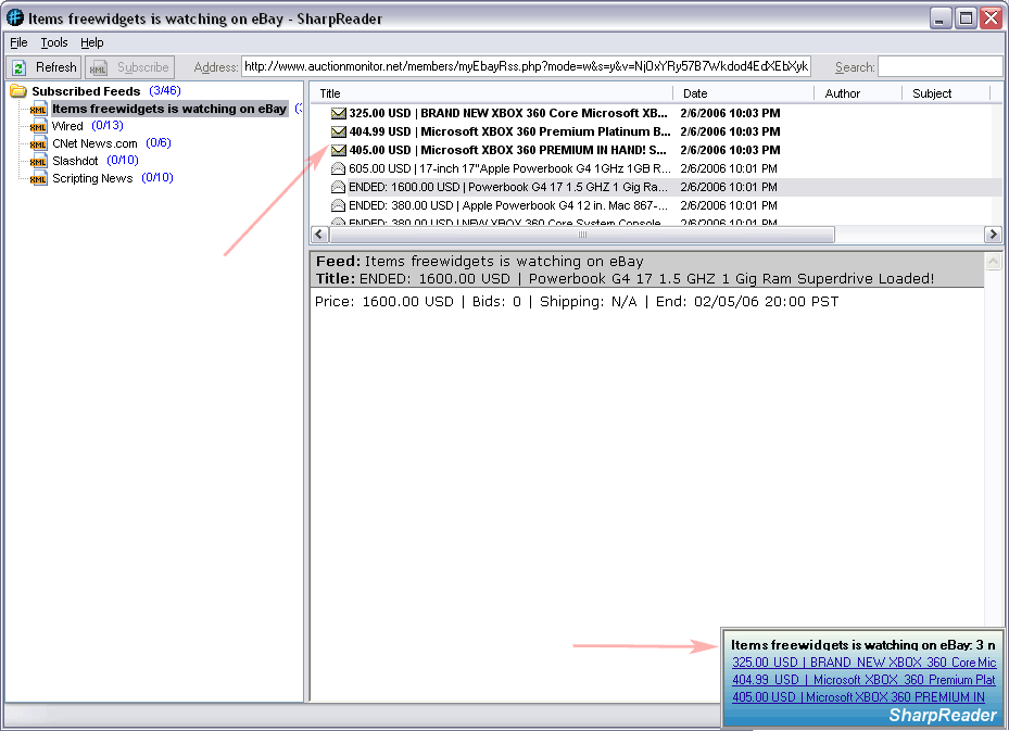 How to add Auctionmonitor.net RSS feeds to Sharp?
